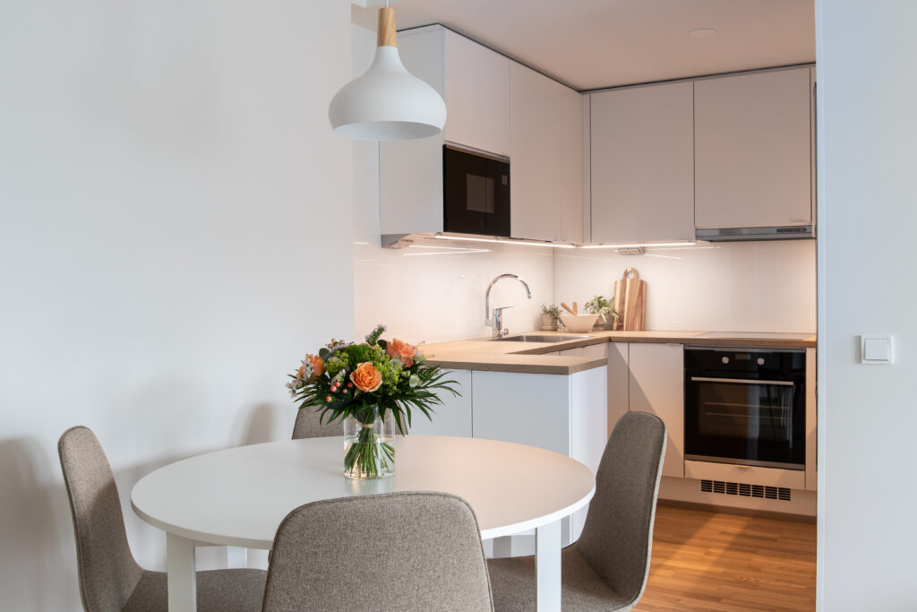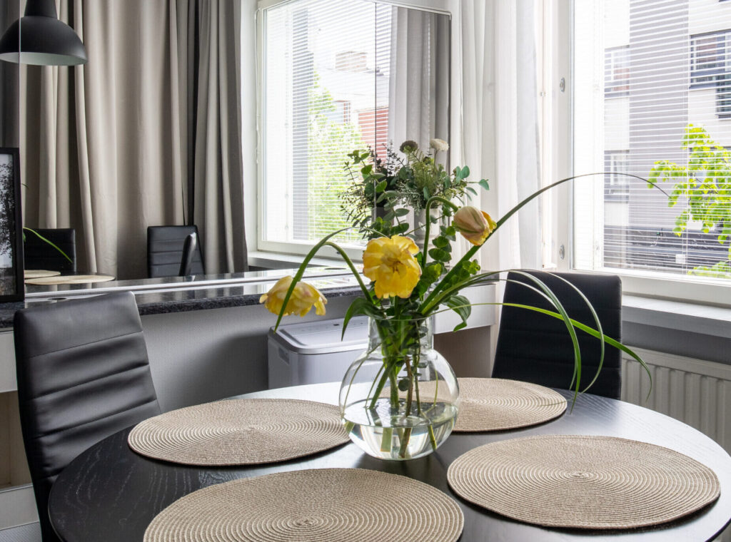 Asunnon kalustaminen ja stailaus myyntiä varten. Voidaan hyödyntää myös olemassa olevia kalusteita tai kalustaa tyhjä asunto.