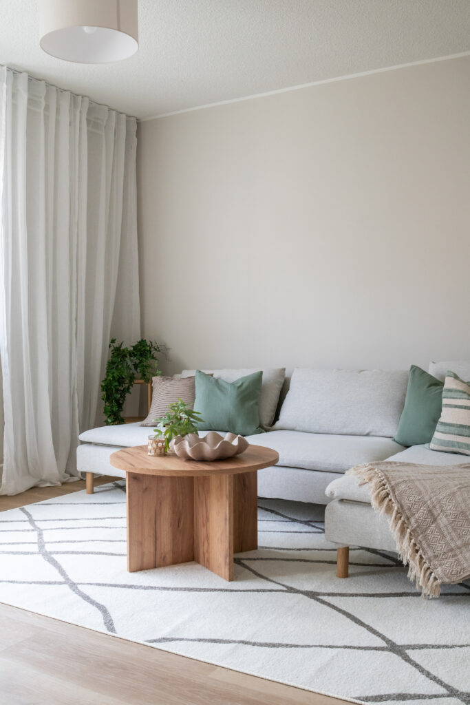 Kalustettu asunto: Jos myytävässä asunnossa on jo kalusteita, tehostamme ilmettä lisäämällä sisustuselementtejä ja tekemällä pieniä muutoksia.